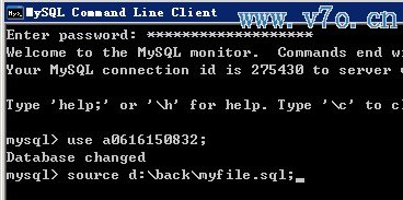 比如:mysql -uroot -pabc123 mydb<file.sql,其中用戶名和密碼也可以是具體數據庫的,不一定要root的。截圖如下: