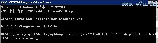比如:mysqldump -uroot -pabc123 mydb>file.sql,其中用戶名和密碼也可以是具體數據庫的,不一定要root的。如果出現when using LOCK TABLES錯誤,可以在database后面加上--skip-lock-tables。